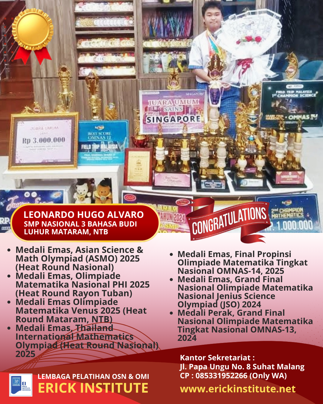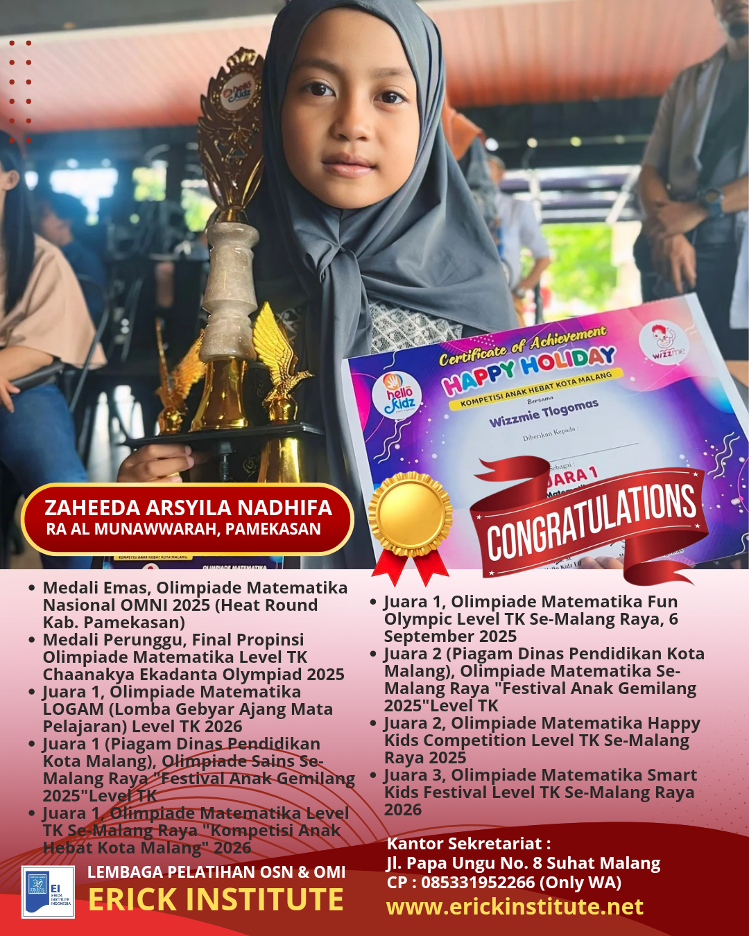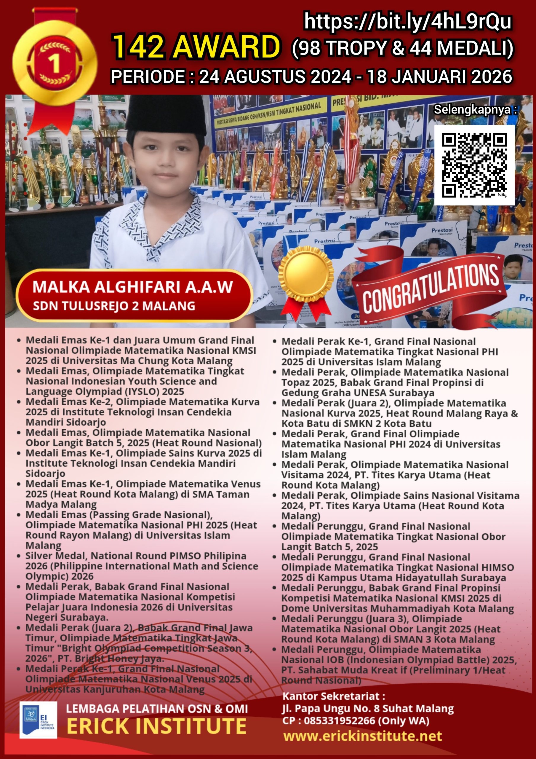 Prestasi Siswa Pelatihan Camp Erick Institute (Khusus Bidang Olimpiade Matematika) Tahun 2018 – 2023