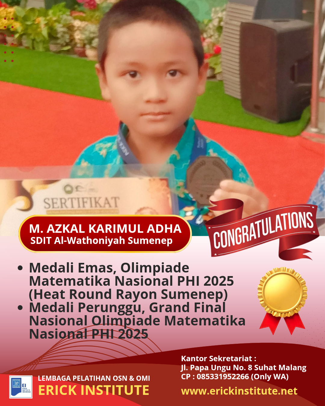 2. Medali Emas, Olimpiade Matematika Kurva 2025 di Institute Teknologi Insan Cendekia Mandiri Sidoarjo