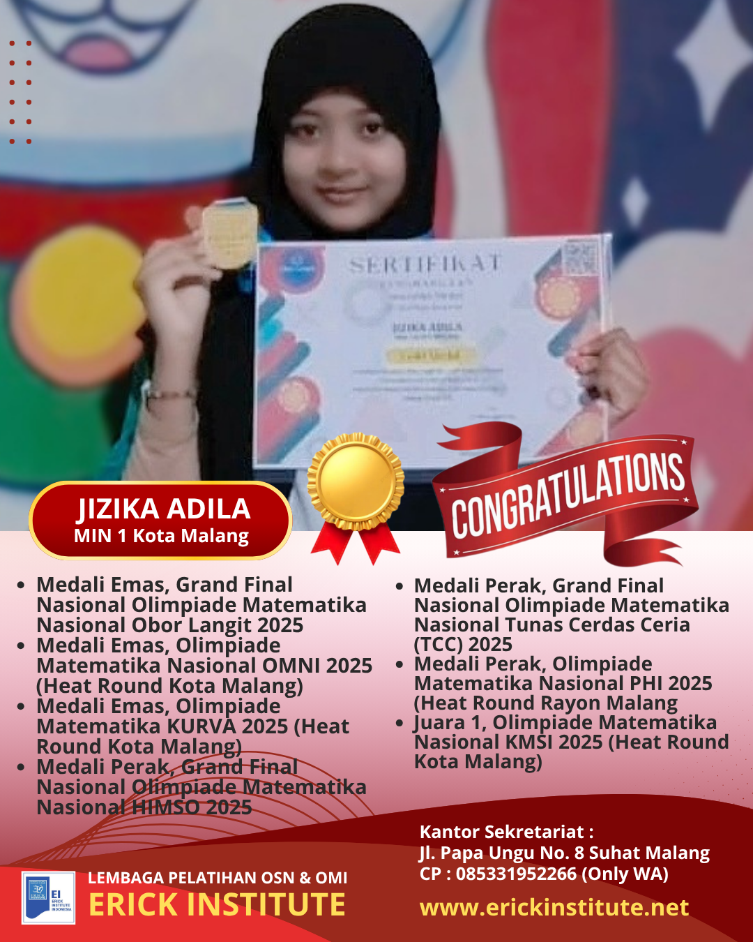 18. Juara 1, Olimpiade Matematika SEISMIC 2025 di SMP Bahrul Maghfiroh Kota Malang .