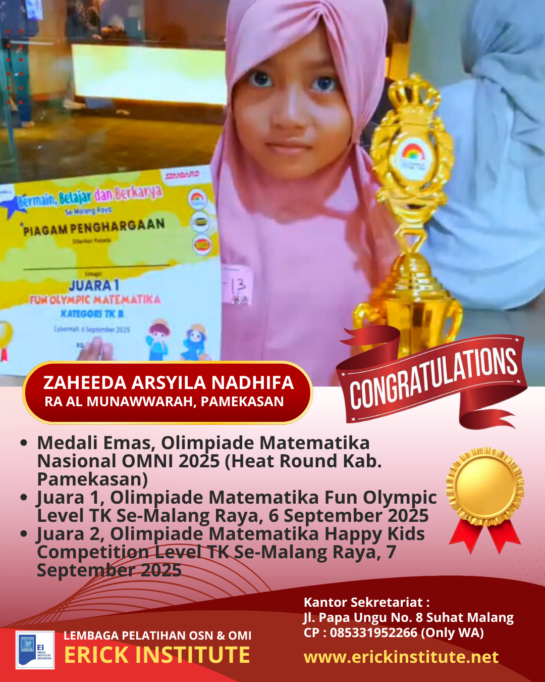 2. Juara 1, Olimpiade Matematika Fun Olympic Level TK Se-Malang Raya, 7 September 2025