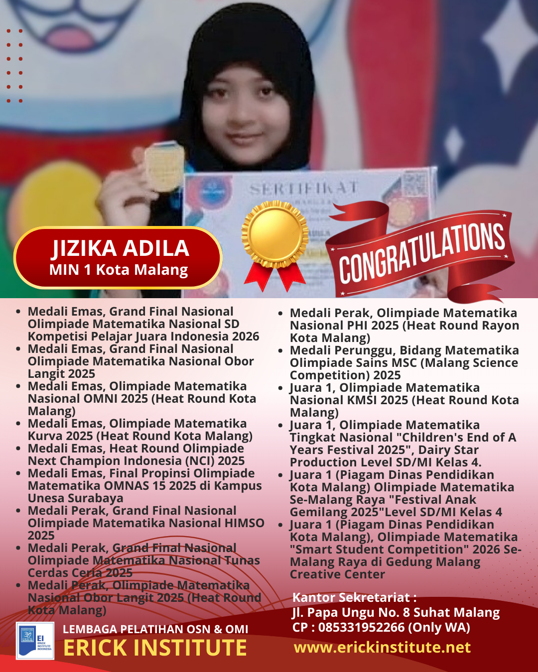 15. Juara 1 (Piagam Dinas Pendidikan Kota Malang), Olimpiade Matematika “Smart Student Competition” 2026 Se-Malang Raya