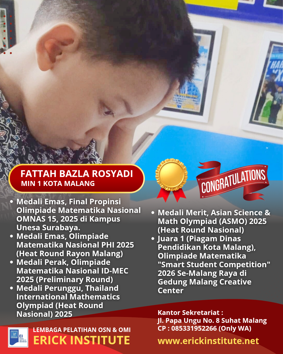 3. Medali Emas Ke-2, Olimpiade Matematika Kurva 2025 di Institute Teknologi Insan Cendekia Mandiri Sidoarjo